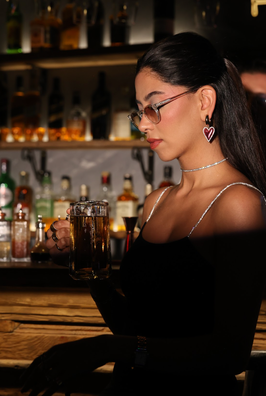 Coffee tones, clear frames, and a perfectly unbothered gaze.